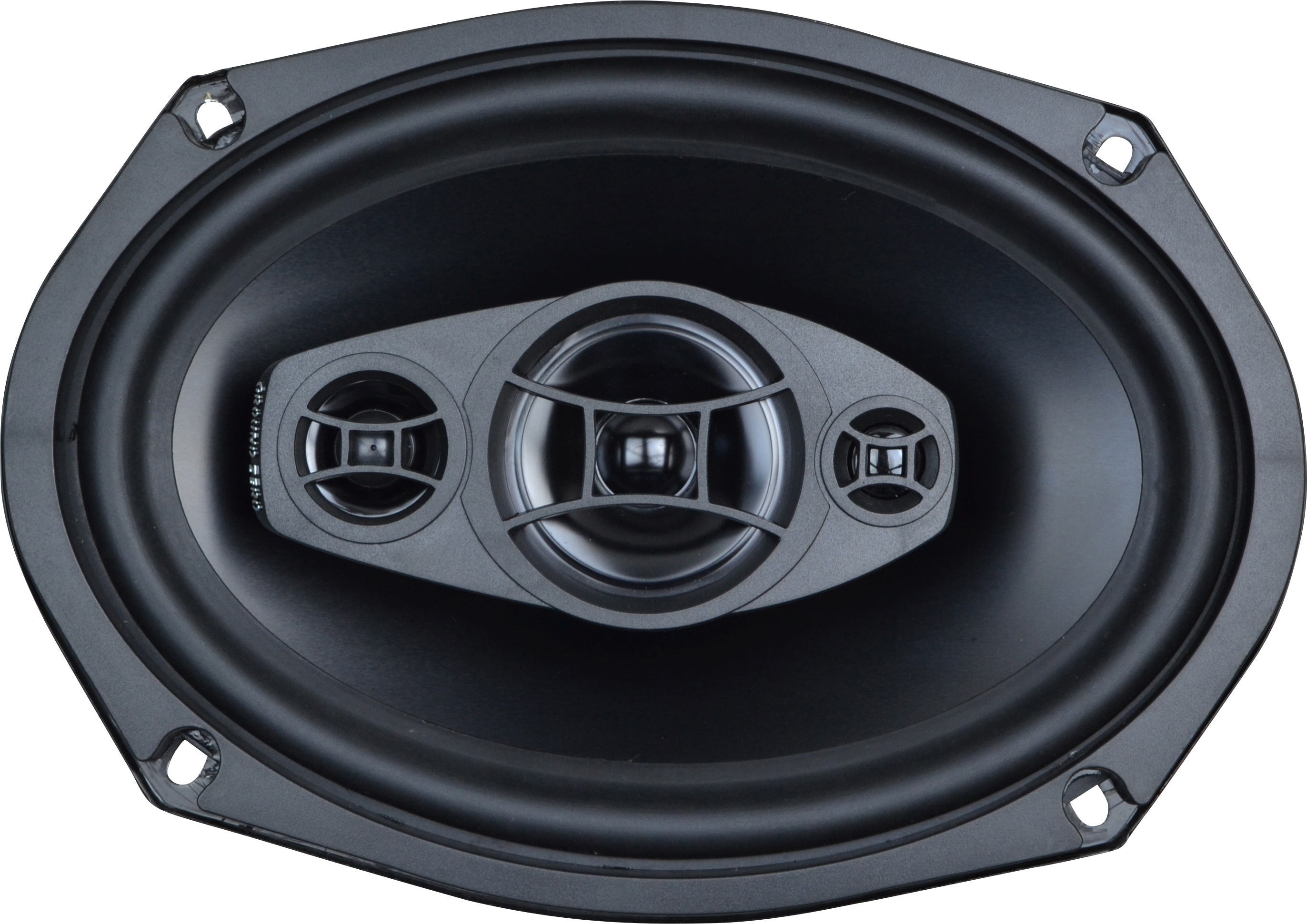 6×9″ 3-way coaxial speaker system with black anodized aluminum cone and 3-ohm impedance
