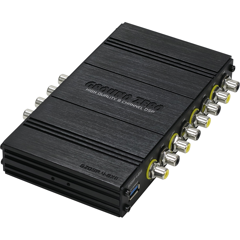 The GZDSP 4-8XII is a digital signal processor increasing the sound quality of the vehicle´s audio equipment, based